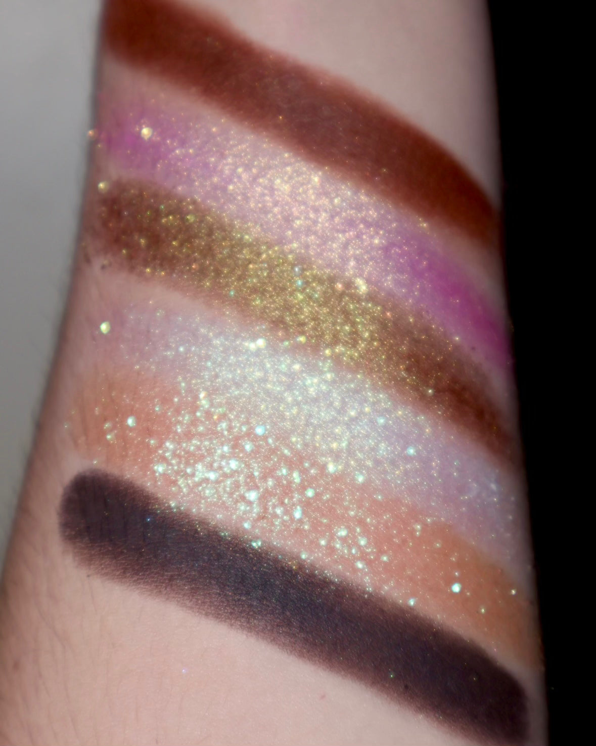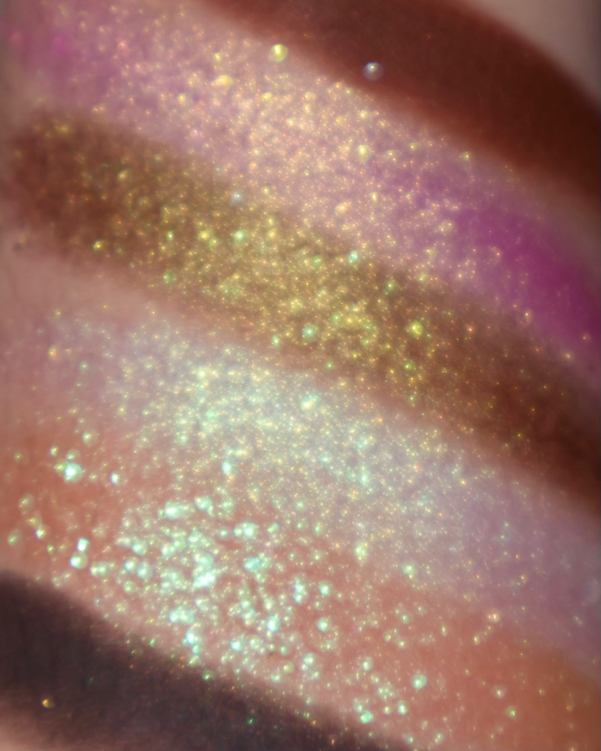 🐚Nautilus: inspired by the shell that’s a classic example of a Fibonacci spiral in nature, this shade appears pink in the pan, but when swatched, its extremely reflective golden shift appears.