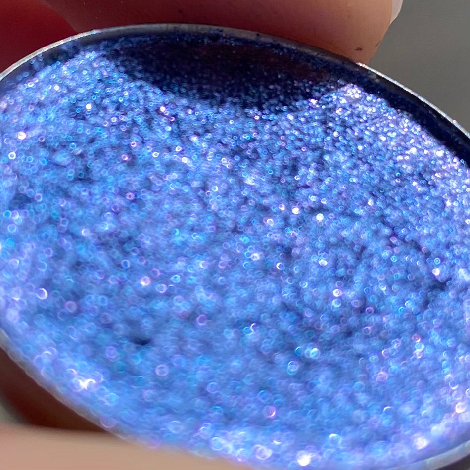 "Orbital" is a deep blue multichrome eyeshadow with purple sparkles. It is inspired by an important concept in chemistry.