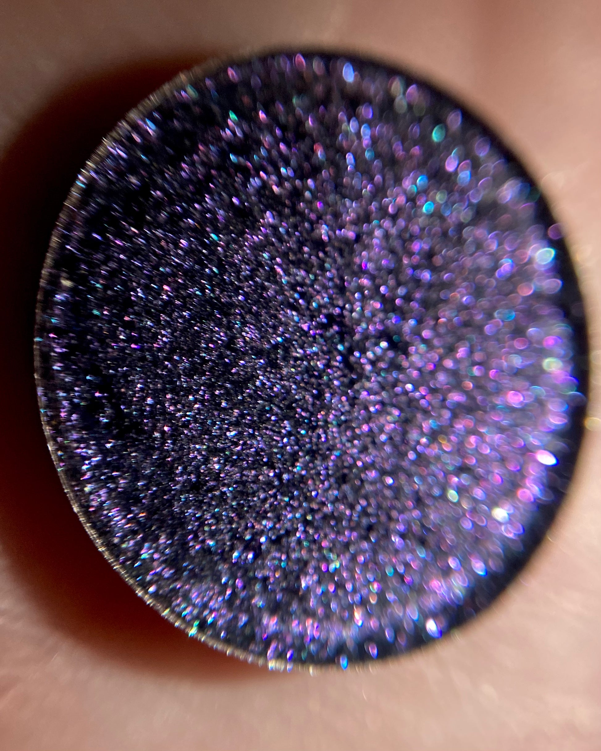 Pulsar is a purple- indigo sparkly multichrome with a black base. This shade is inspired by Pulsars, which are rapidly rotating, highly magnetized stars that emit beams of electromagnetic radiation. Carl Sagan included a diagram of the nearest pulsar to Earth on the Golden Record, in hopes that extraterrestrial life would be able to locate us.