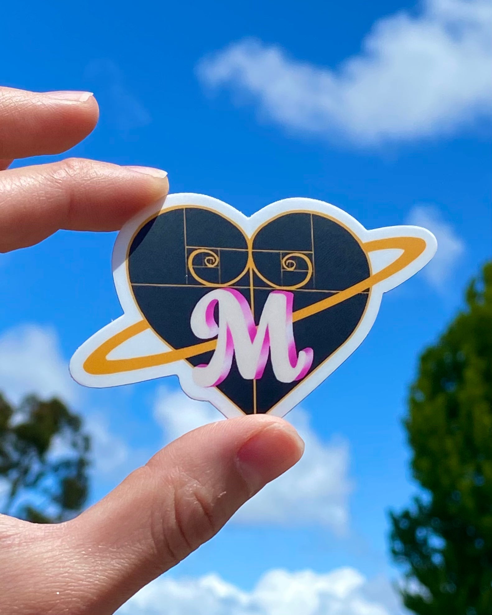 3 inch × 1.93 inch sticker featuring the special edition M81 Cosmetics Logo in celebration of the Golden Ratio Palette Release