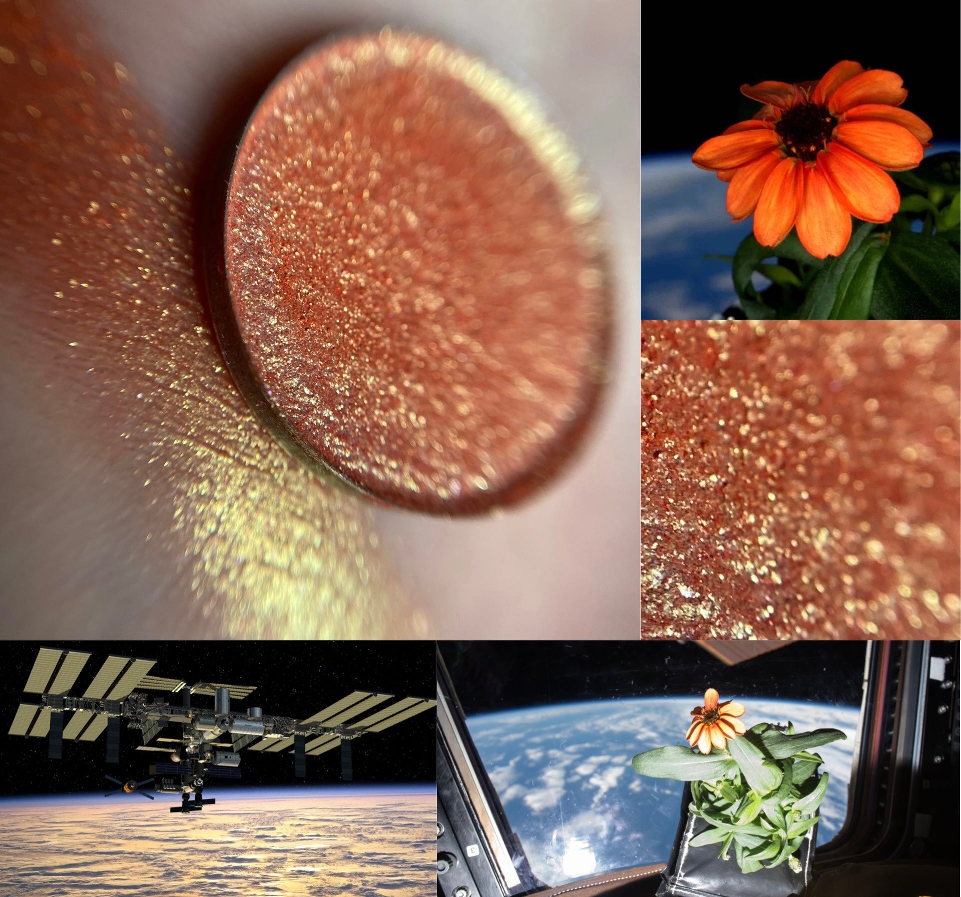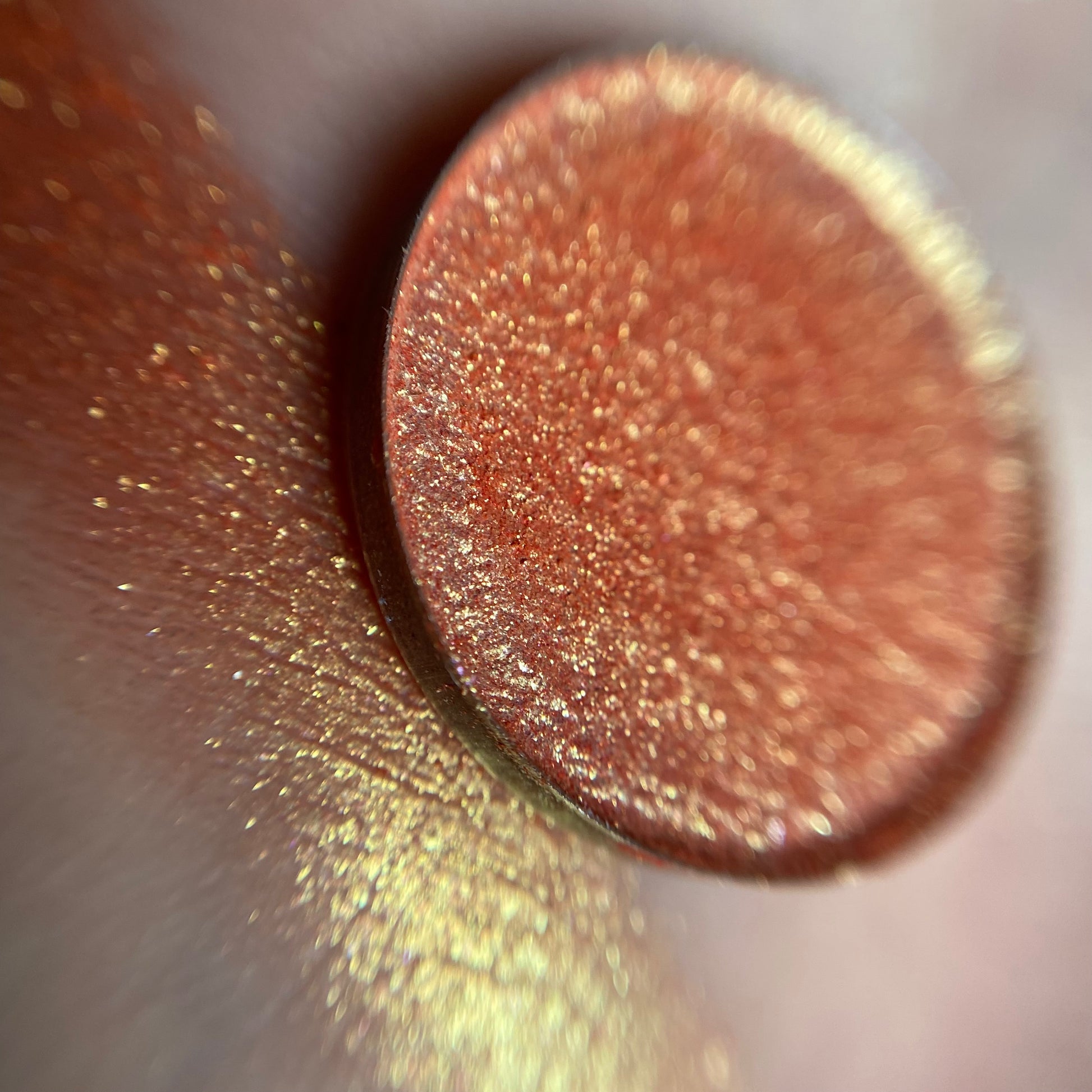 "Zinnia" is an orange multichrome eyeshadow with an intense gold sparkle.
